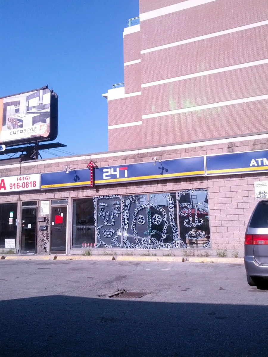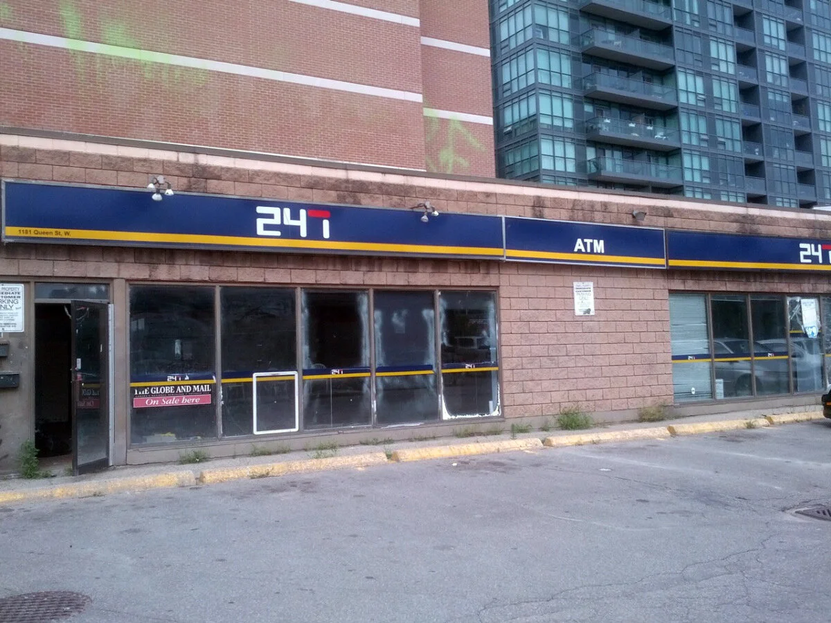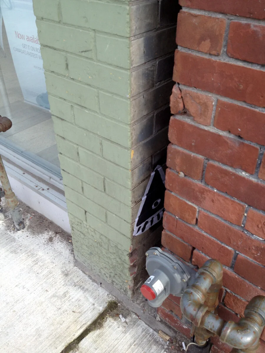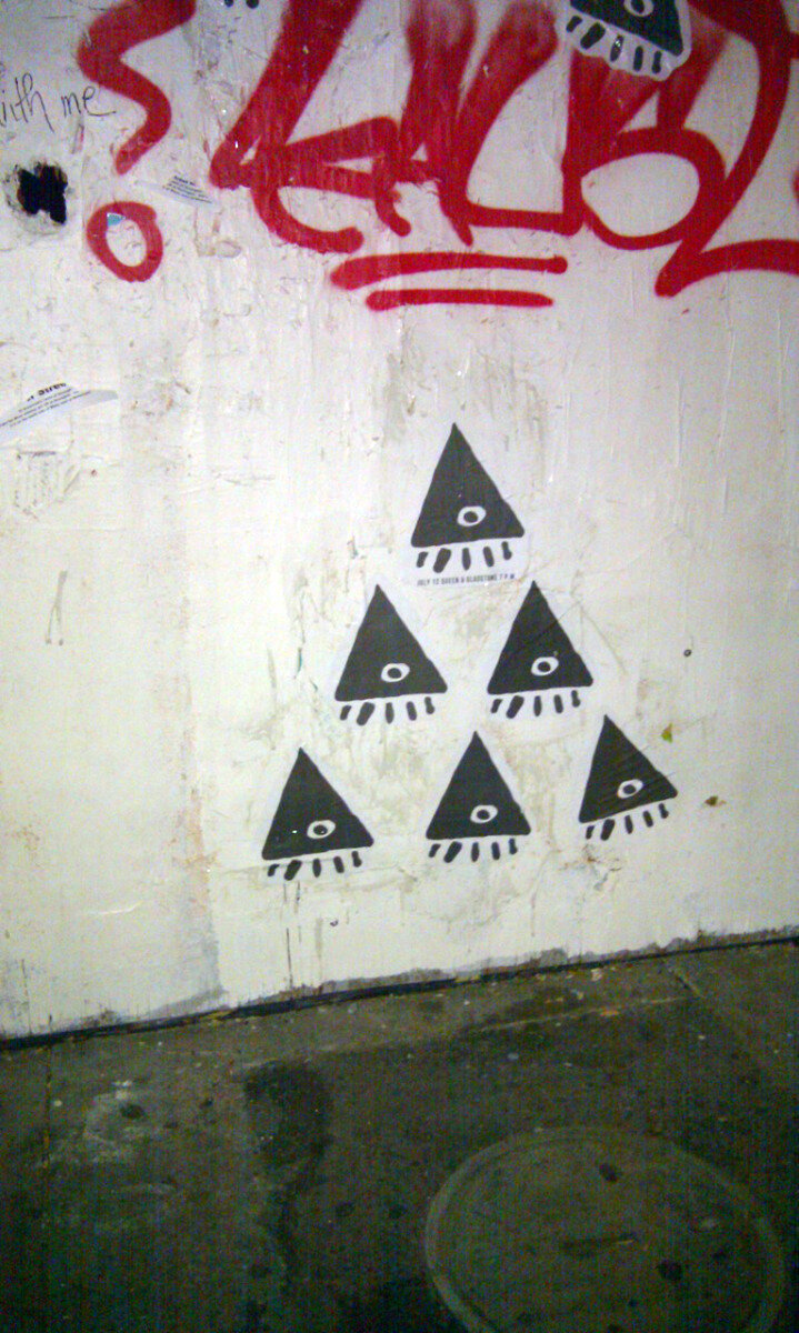 artist Ashton Shearer cutting out some of the over 2000 hand-drawn, vinyl triangles used to create window mural
