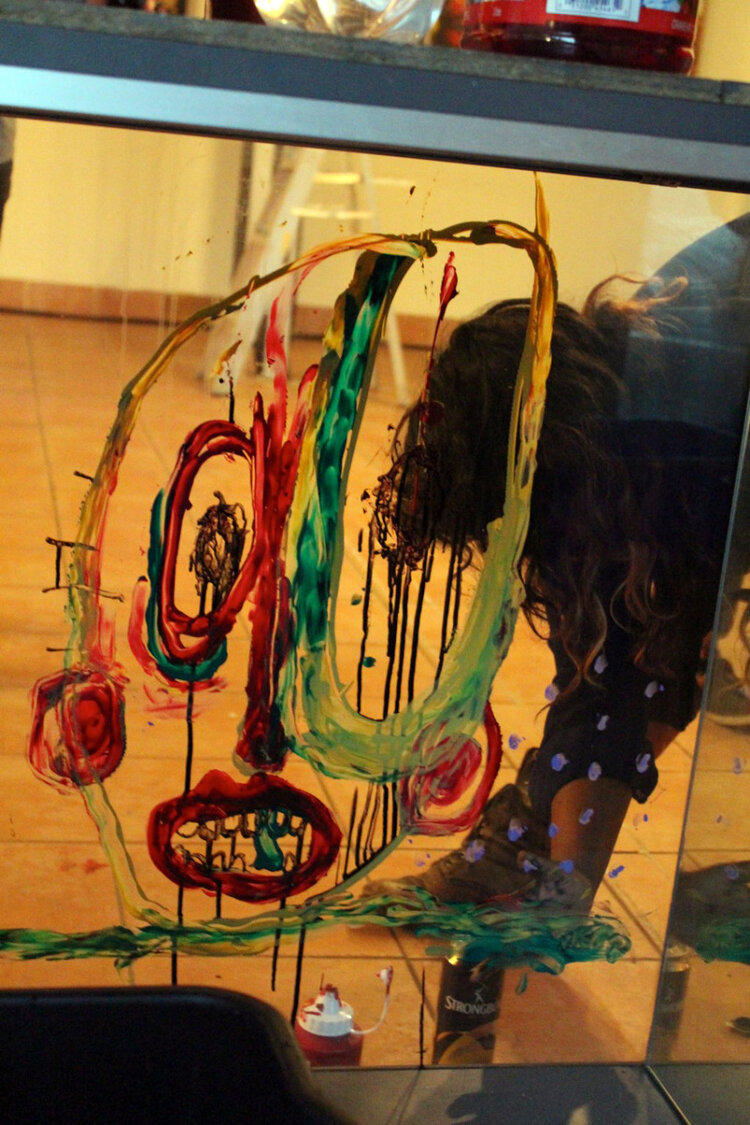 videographer Jake Lopez splatters the bathroom in uncontrollable frenzy